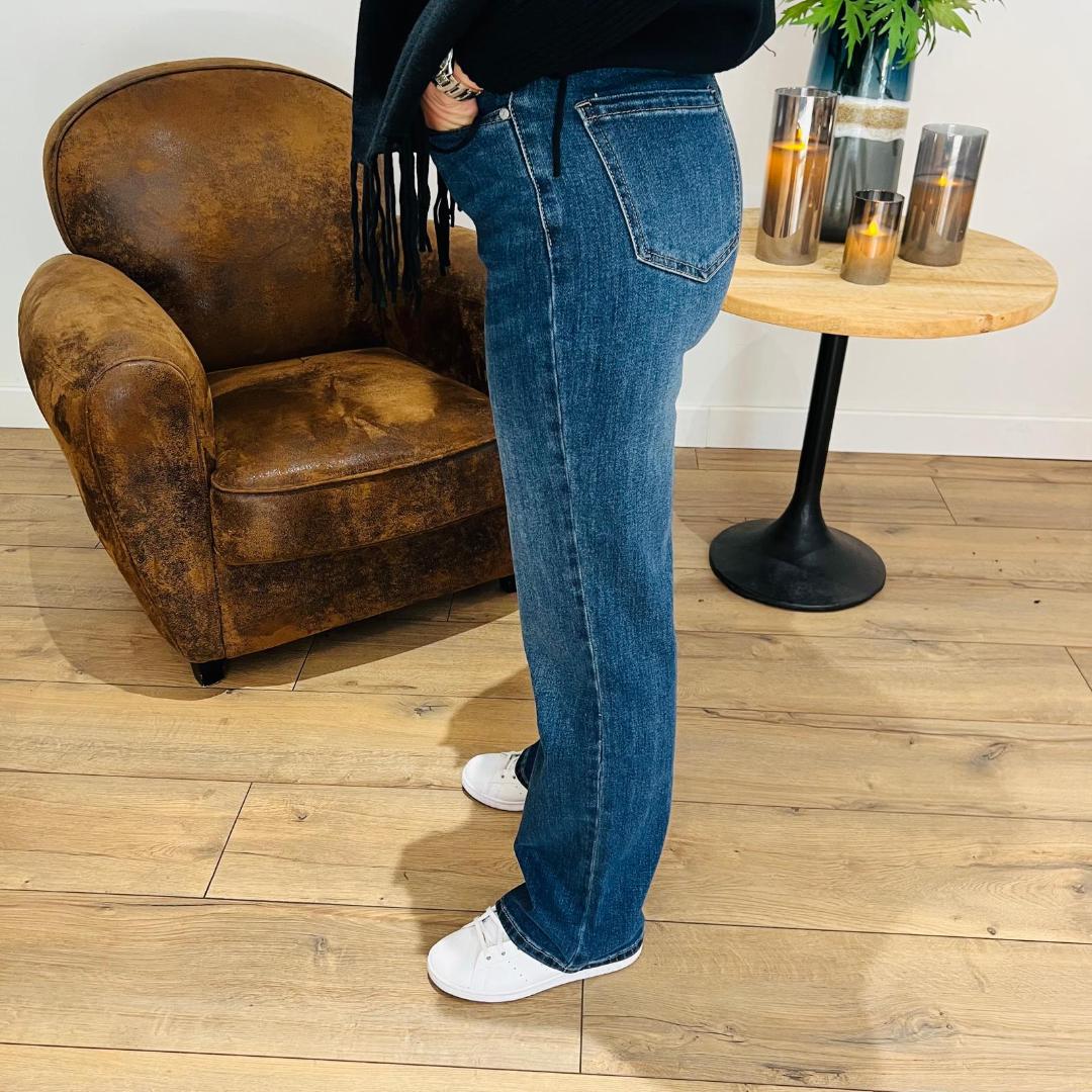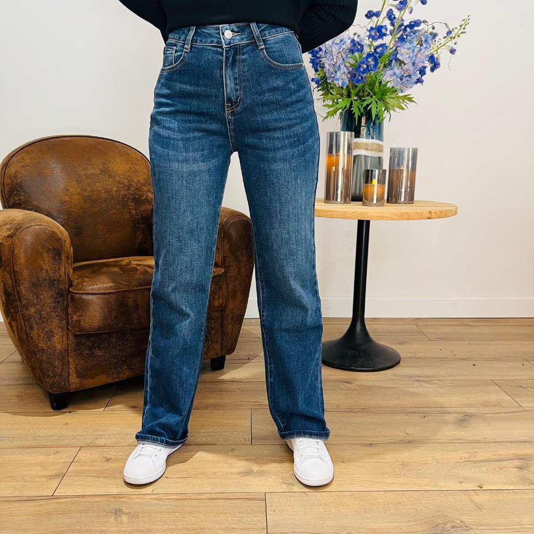 Ce jean droit taille haute est un indispensable du dressing, alliant confort, coupe flatteuse et style intemporel.